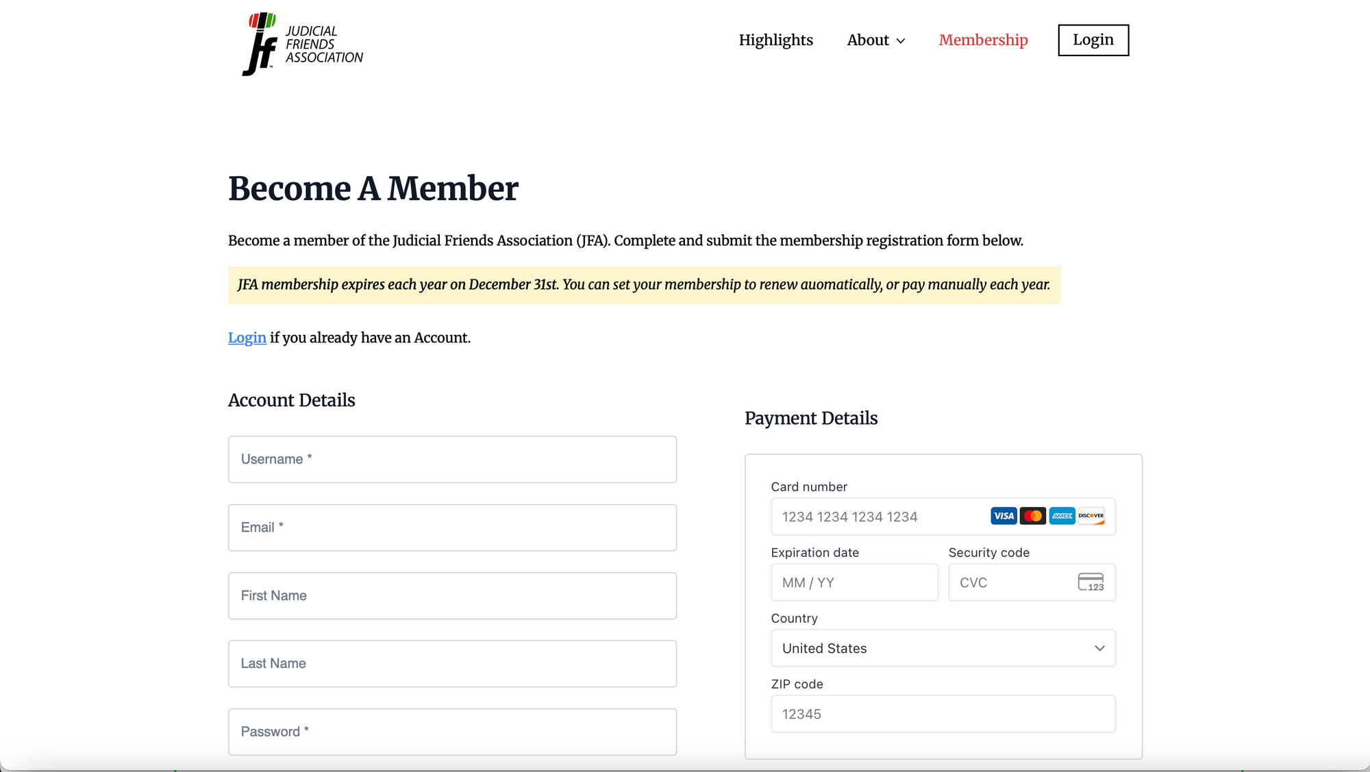 I just launched a redesigned website for the Judicial Friends Association (JFA) in New York City. The Problem: JFA wanted to move its annual membership process online and make it easier for designated JFA members to administer their website...