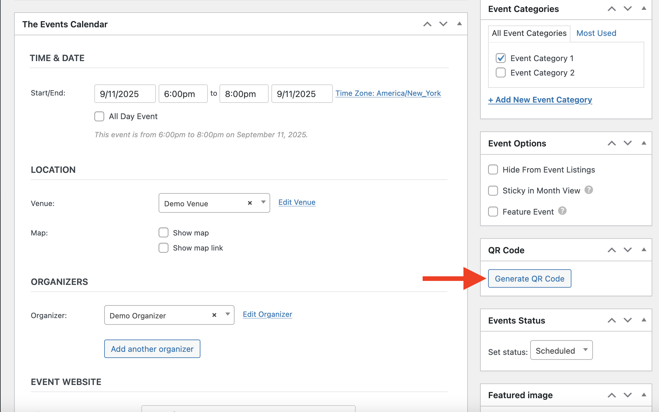 - Scroll down to the QR Code block (right-sidebar). Click the Generate QR Code button.